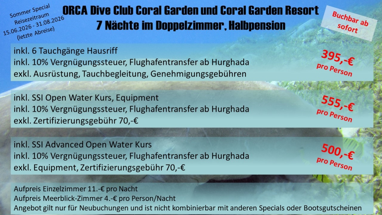 Sommer Special 2026 ORCA Dive Club Coral Garden und Coral Garden Resort